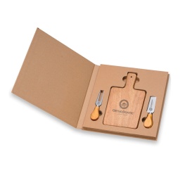 Acompanhando o kit, vem um estojo de papel, que ajuda a manter os utensílios organizados e protegidos quando não estão em uso. Além disso, o estojo também é uma ótima opção para presentear alguém especial, seja um colaborador da empresa ou um amigo que adora cozinhar.